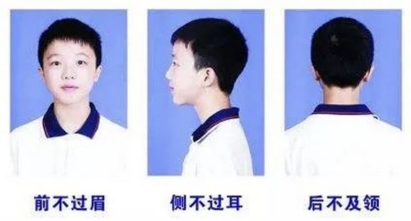 1、儀容儀表符合中學生規(guī)范,不燙發(fā)染發(fā),不化妝,男生不留長發(fā)(發(fā)型要求見上圖),不著奇裝異服;學生在校一律穿校服,不準佩戴飾物。新學期報到時所有學生著校服入校(高一年級、七年級除外),儀容儀表不合格的不辦理報名手續(xù)。