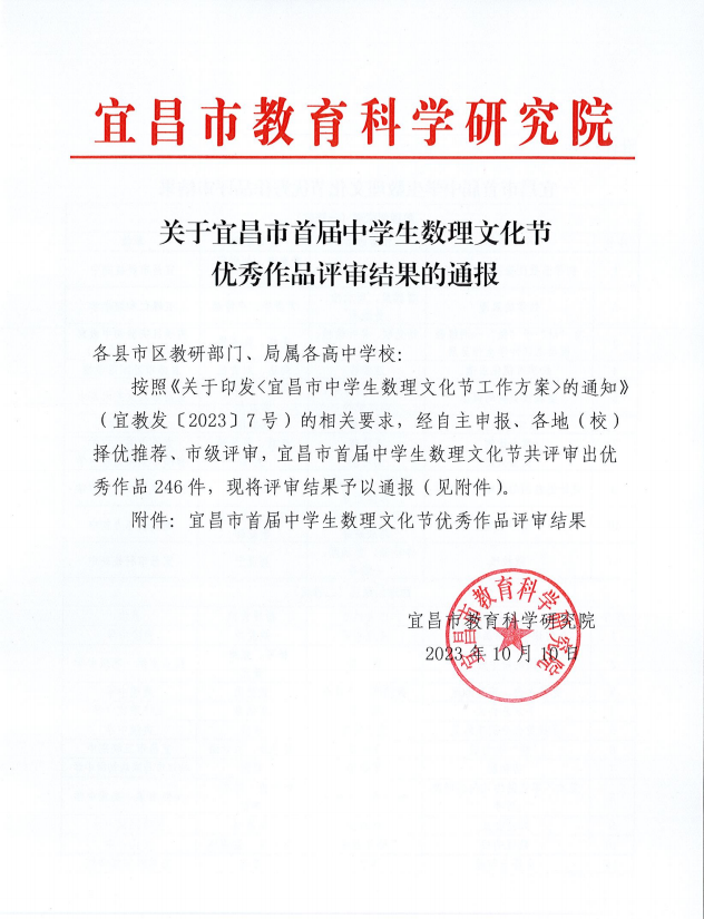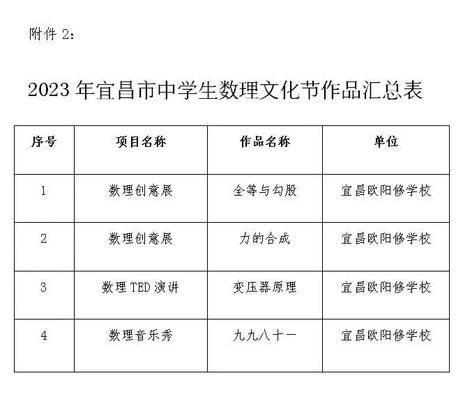 在宜昌市首屆數(shù)理文化節(jié)優(yōu)秀作品展評(píng)活動(dòng)中,宜昌歐陽(yáng)修學(xué)校學(xué)子載譽(yù)歸來(lái)。我校共報(bào)送優(yōu)秀作品4件,其中2件獲得市級(jí)獎(jiǎng)項(xiàng),分別是二等獎(jiǎng)和三等獎(jiǎng)。