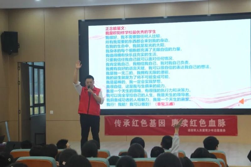 活動(dòng)接近尾聲,方雷老師帶領(lǐng)全體同學(xué)齊聲誦讀能量文:“我相信!我能行!我可以!”響亮的誓言在音樂(lè)的伴奏下猶如戰(zhàn)鼓之聲,激勵(lì)學(xué)生們勇敢追求自己的夢(mèng)想。
