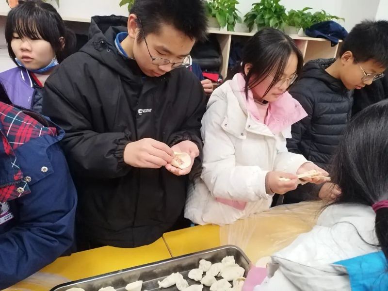 時(shí)值冬至日,我校八年級(jí)的全體師生舉行了一場(chǎng)別開生面的包餃子活動(dòng)。中午,家委會(huì)代表冒著寒風(fēng)送來了餃子皮和已經(jīng)剁好、調(diào)好的肉餡兒。下午第一節(jié)課后,八年級(jí)的同學(xué)們齊動(dòng)手,布置好了包餃子的臺(tái)面,同學(xué)們臉上洋溢著期待的笑容。