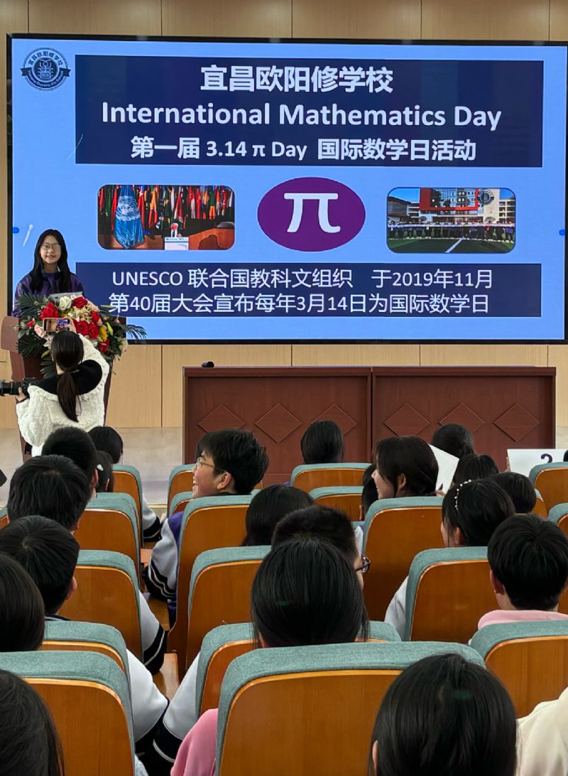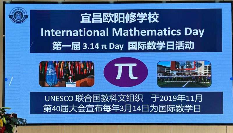 UNESCO 聯(lián)合國教科文組織 于2019年11月第40屆大會宣布每年3月14日為“International Mathematics Day 國際數(shù)學日”。 2024年3月14日是第五個“國際數(shù)學日”即圓周率日(π=3.1415926),下午15點9分26秒,宜昌歐陽修學校國際部舉辦了首屆國際數(shù)學日活動。