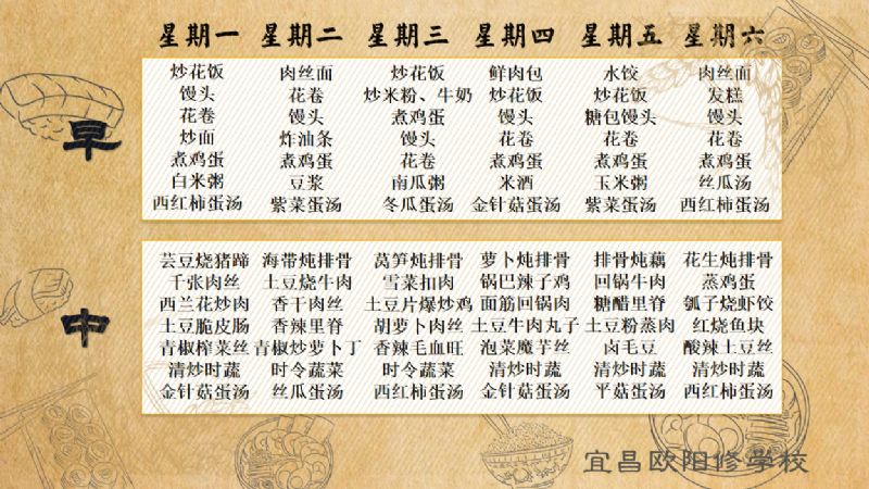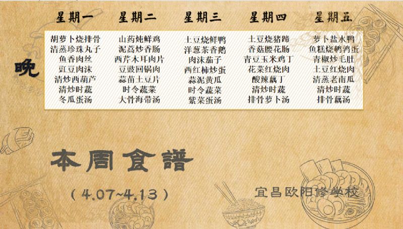 宜昌歐陽(yáng)修學(xué)校每周食譜(4月7日至4月13日)