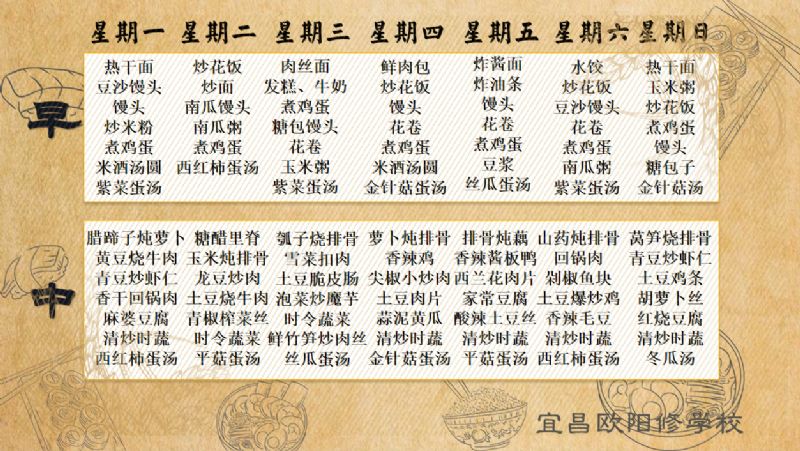 宜昌歐陽修學(xué)校每周食譜(4月22日至4月28日)