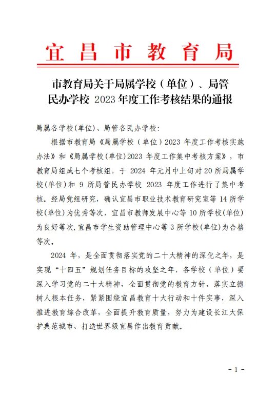 2024年,我校將繼續(xù)深入學(xué)習(xí)黨的二十大精神,全面貫徹黨的教育方針,落實(shí)立德樹(shù)人的根本任務(wù),緊緊圍繞宜昌教育十大行動(dòng)和十件實(shí)事,深入推進(jìn)教育綜合改革,全面提升教育質(zhì)量,我校將不負(fù)社會(huì)各界期望,繼續(xù)利用各類教育資源,解決好存在的問(wèn)題,為學(xué)生的終身發(fā)展負(fù)責(zé),為辦人民滿意的教育持續(xù)奮進(jìn)!
