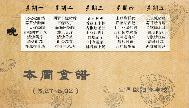 宜昌歐陽(yáng)修學(xué)校每周食譜(5月27日至6月2日)