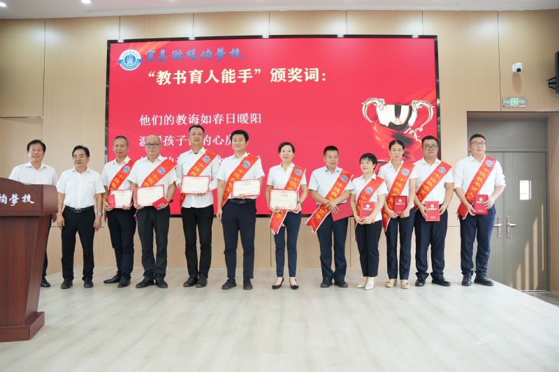 在隨后的頒獎(jiǎng)典禮上,幾位校長(zhǎng)分別為宜昌歐陽(yáng)修學(xué)?!笆呀虝?shū)育人能手”(高曉軍、胡平、姜尚金、羅琰淼、李駿、王海玉、王優(yōu)喜、姚子云、張躍新、張琴)、“十佳師德標(biāo)兵”(郭俊峰、胡小明、李蘇穎、李曉鱈、牛家濤、萬(wàn)詩(shī)榮、向麗華、楊晶、楊曉麗、周志清)及"學(xué)期質(zhì)量獎(jiǎng)"(張燕平、岑歲、徐煒、楊晶、羅琰淼、覃立娥、陳孝娟、曹沁燕、李駿、楊曉麗、錢(qián)靖玟、陳詩(shī)琪等)獲得者頒獎(jiǎng)。他們不斷創(chuàng)新自己的教學(xué)方法,用質(zhì)量與成果,為學(xué)生鋪設(shè)成長(zhǎng)的道路,讓學(xué)生在知識(shí)的道路中穩(wěn)步前行。獲獎(jiǎng)教師們?cè)陬C獎(jiǎng)典禮上接受了榮譽(yù)證書(shū)和獎(jiǎng)品,現(xiàn)場(chǎng)掌聲不斷,氣氛熱烈。教師們的教學(xué)才華和辛勤付出得到了全體學(xué)生和同仁的高度贊揚(yáng)。