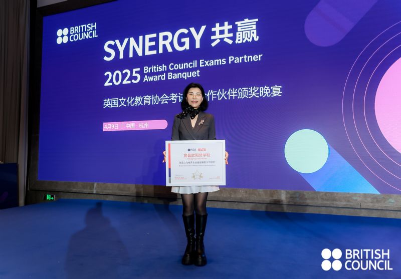 2025年4月9日,宜昌歐陽(yáng)修學(xué)校被BritishCouncil英國(guó)文化教育協(xié)會(huì)和雅思考試中心官方評(píng)定為“星級(jí)雅思示范中學(xué)”并受邀赴浙江杭州參加Synergy共贏2025英國(guó)文化教育協(xié)會(huì)考試部年會(huì)及頒獎(jiǎng)儀式。我校國(guó)際高中的負(fù)責(zé)人李翠銀主任代表學(xué)校赴杭州參加了此次的授牌儀式。