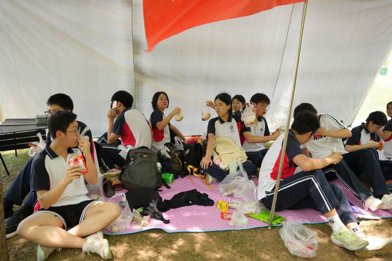 期待已久的午餐時間到!學校精心準備的午餐驚艷亮相。圍坐在草坪上分享美食,班主任化身"大家長"忙前忙后,不知誰先哼起的班歌,引得一片應和。這一刻,連風都帶著甜甜的青春味道~
