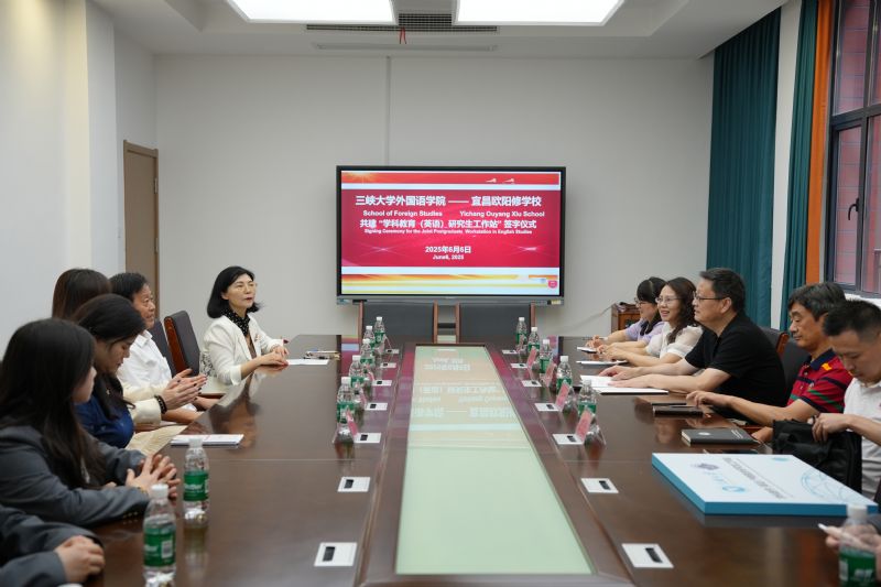 雙方在三樓會(huì)議室隆重舉行簽約儀式暨合作座談會(huì)。三峽大學(xué)外國語學(xué)院院長席敬教授率代表團(tuán)出席,成員包括學(xué)院黨政辦主任余征、英語系主任劉君紅、學(xué)院科研辦科長葉芳以及宜昌英語協(xié)會(huì)秘書長李志坤等。會(huì)上,雙方圍繞研究生工作站的建設(shè)規(guī)劃、運(yùn)行機(jī)制及未來發(fā)展等議題進(jìn)行了深入交流與探討。