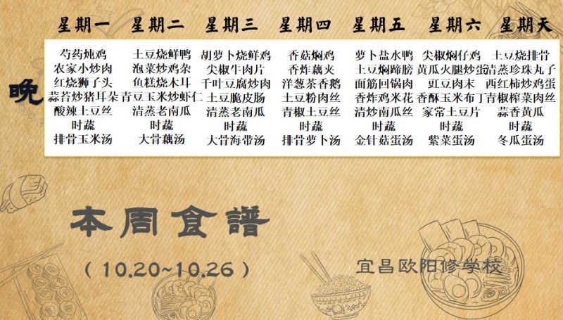 宜昌歐陽修學(xué)校每周食譜(10月20日-10月26日)