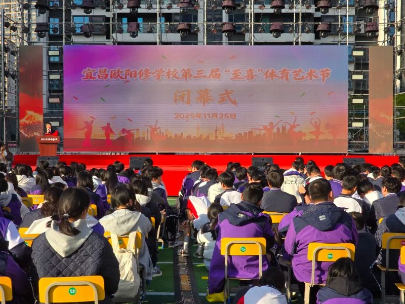隨后,喬明木副校長鄭重宣布:“宜昌歐陽修學(xué)校第三屆‘至喜’體育藝術(shù)節(jié)閉幕!”話音落下,全場掌聲雷動。在激昂的旋律中,各班代表隊邁著整齊的步伐有序退場,隊形整齊劃一,展現(xiàn)出歐校學(xué)子良好的精神風(fēng)貌。